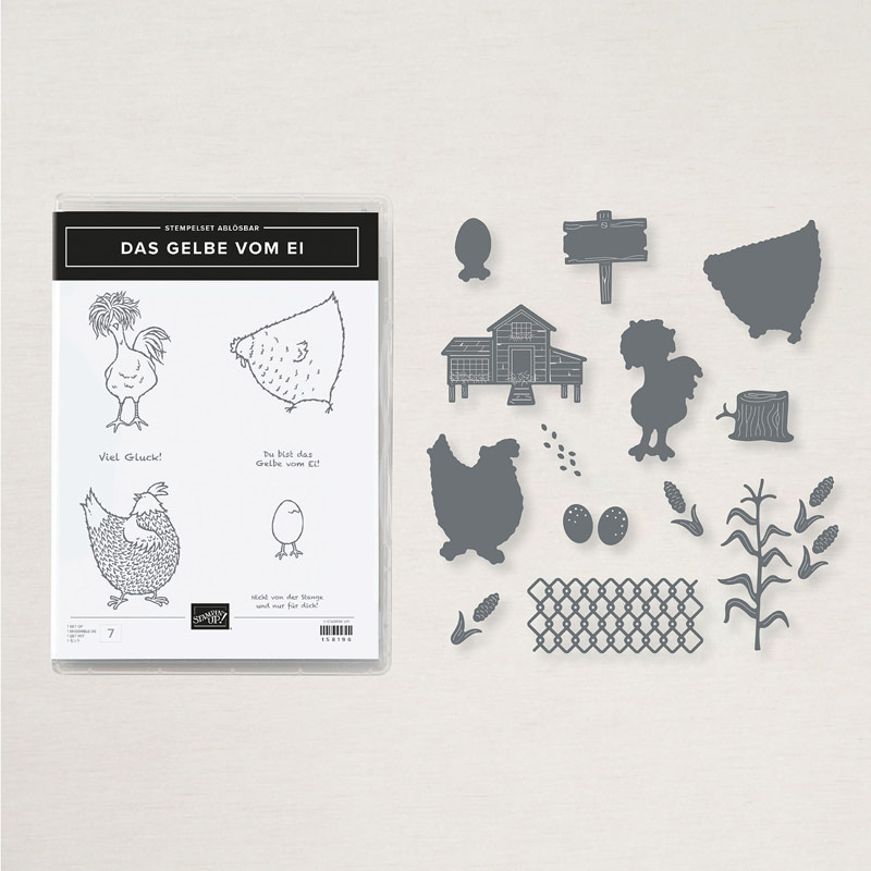 Exklusives Stempelset; nur im Rahmen der Aktion „Das Gelbe vom Ei“ erhältlich (ursprünglich ein Angebot bei Sale-A-Bration 2017).