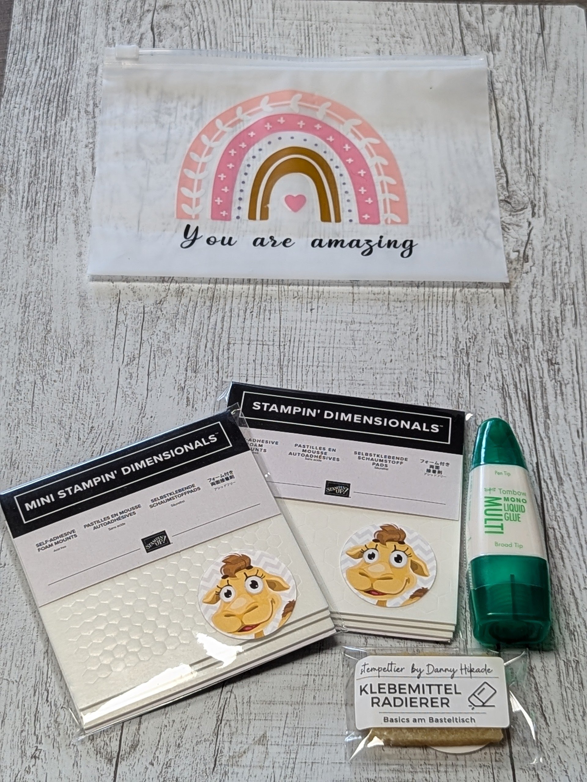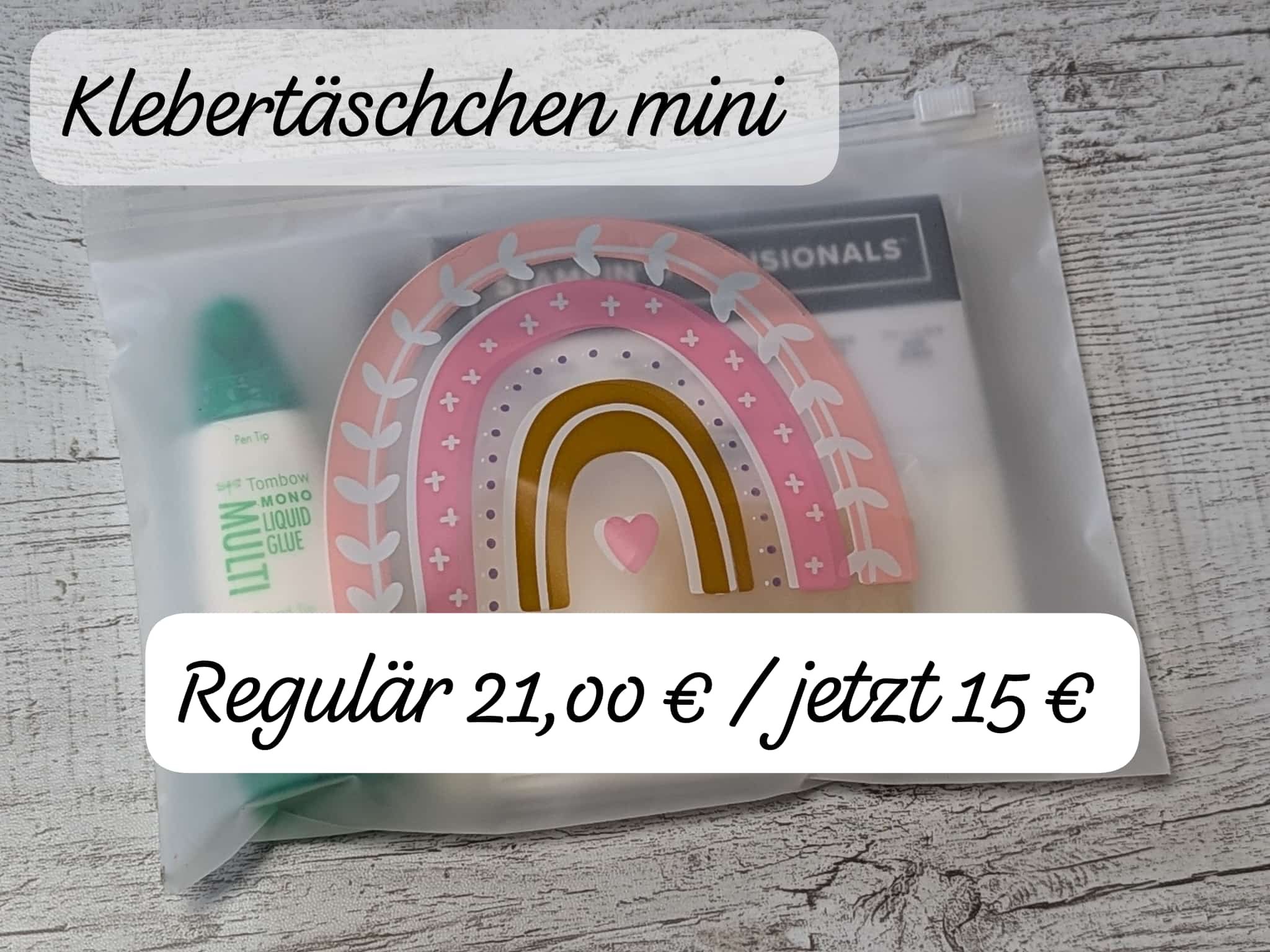 das Stempeltier® Klebertäschchen Mini beinhaltet folgende Dinge:
