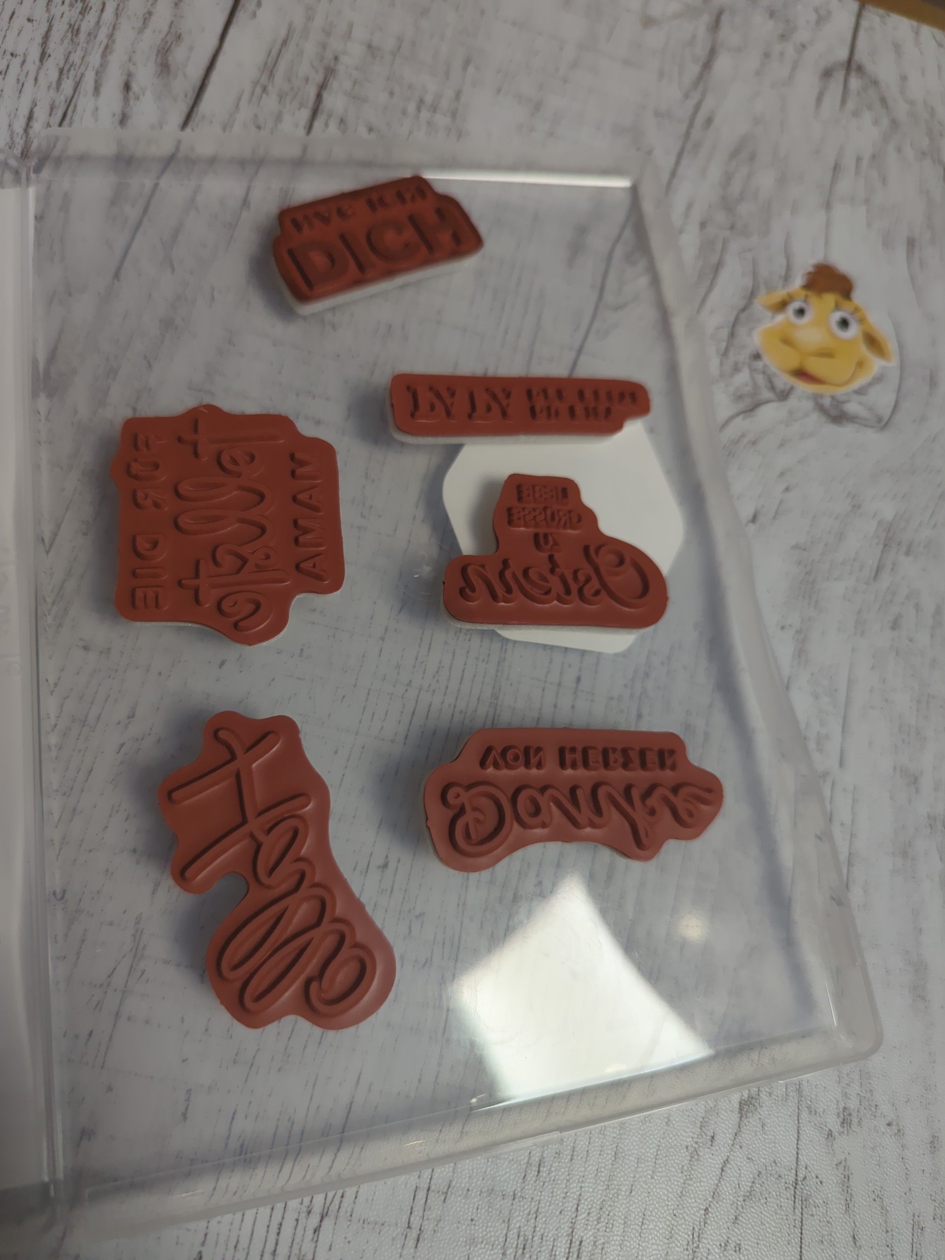 gebrauchtes Stempelset aus rotem Gummi, wenig genutzt siehe Fotos , 6 tlg